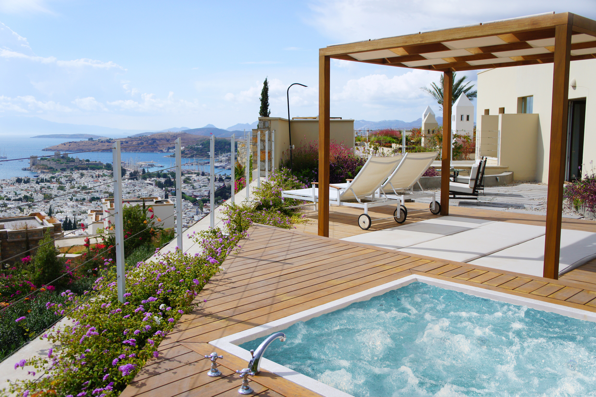 Bâti sur une colline jouissant d'une superbe vue, l'hôtel dispose de 95 chambres et suites avec vue sur la Mer, le Château Saint-Pierre de Bodrum et le jardin privé, toutes équipées de balcon ou terrasse avec fauteuils,