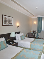Le Bulvar Palas dispose de 70 chambres spacieuses ce qui confère à cet hôtel un avantage certain, de décoration classique, elles sont équipées de TV satellite, coffre-fort, téléphone, minibar, climatisation centrale, wifi, téléphone, salle de bain avec baignoire et téléphone. Il y a 14 chambres non fumeur.