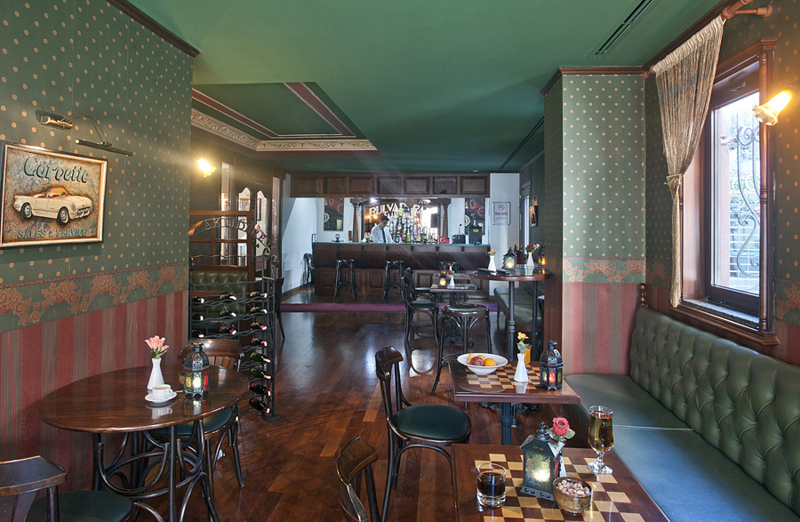 o L'hôtel dispose d'un restaurant principal au premier étage ainsi que d'un pub donnant sur une petite cour.